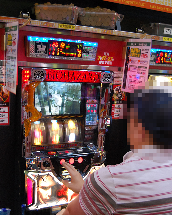 5円パチスロにもたくさんのプレイヤーが詰めかけている様子。「バイオハザード5」や「パチスロ牙狼‐守りし者‐」などで、機種のポテンシャルを発揮できているプレイヤーの姿も見られた。