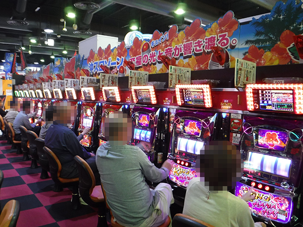 20円パチスロに目を向けると、「バジリスク~甲賀忍法帖~絆」や「戦国パチスロ花の慶次 ~天を穿つ戦槍~」などで活気のあるシーンを目撃。プレイヤーの嬉しそうな表情からは、心から遊技を堪能しているようだった。