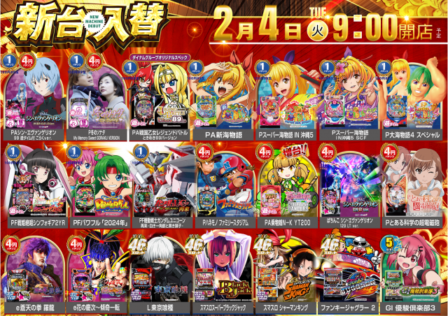 本日 新台入替!PB機エヴァ/冬ソナ含む、全22機種35台