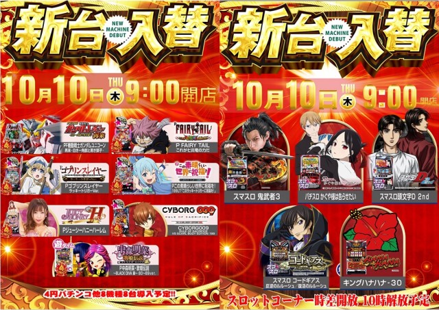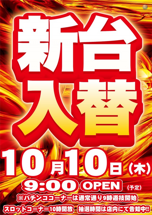 本日 店休日!明日 10/10(木)_新台入替!(予定)