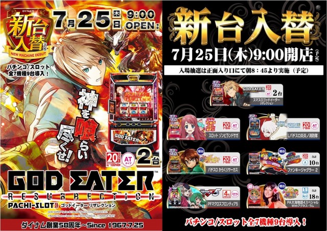 本日新台入替!Lゴッドイーター含む、全7機種導入!