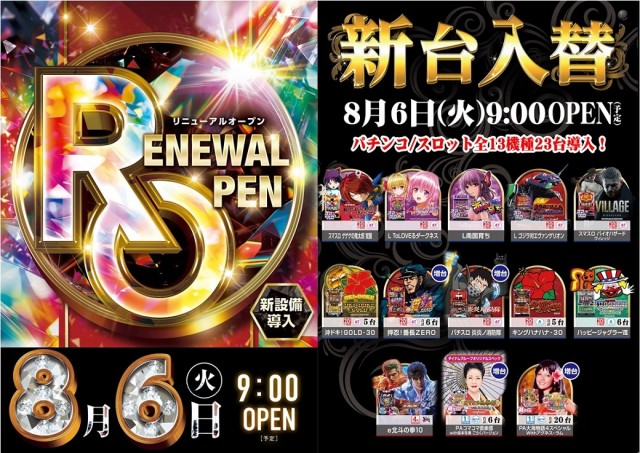 本日リニューアルオープン!!全13機種導入!