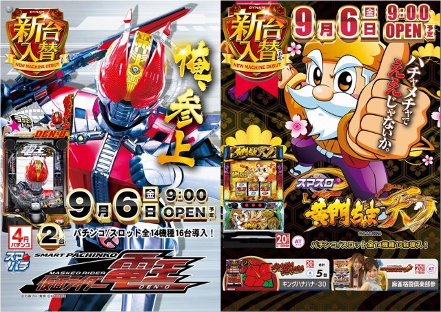 本日新台入替!e 仮面ライダー電王含む、全14機種導入!