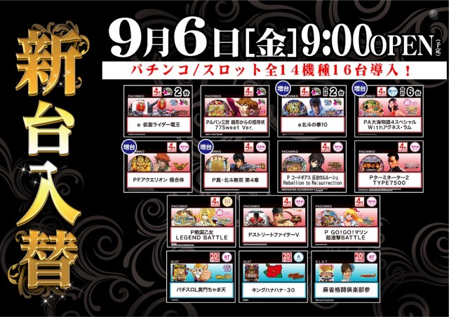 本日店休日!明日 9/6(金)_新台入替予定!