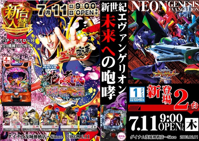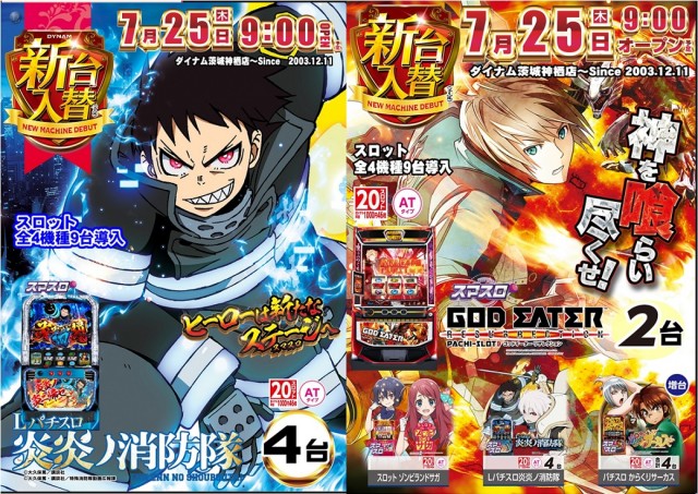 本日 7/25(木)Lパチスロ炎炎含む、全4機種導入!