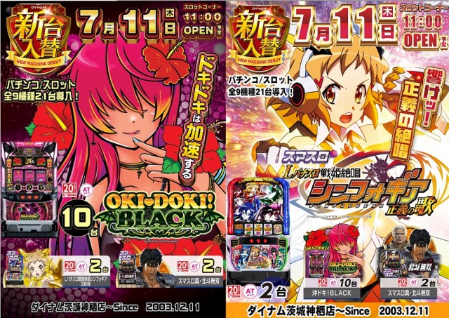 本日 7/11(木)沖ドキ!BLACK含む、全9機種導入!