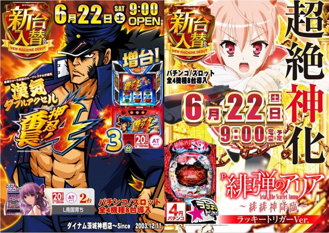 明日 6/22(土)LT緋弾のアリア含む、全4機種導入!