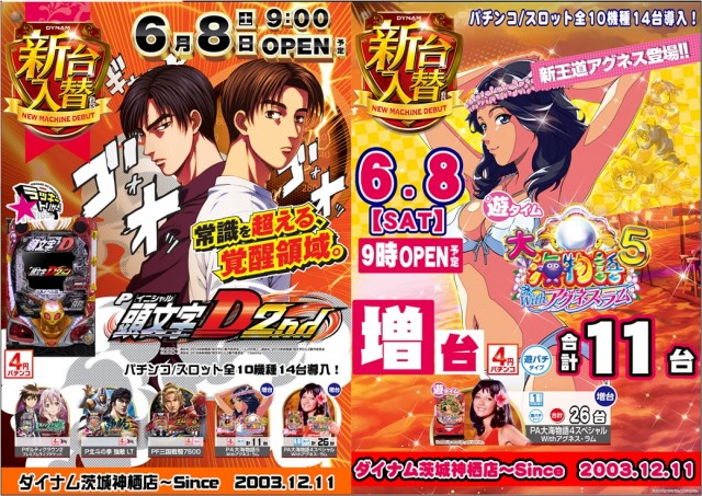 本日 6/8(土)頭文字2nd含む、全10機種14台導入!