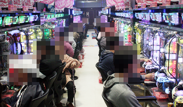 取材日は雨が降っていたにもかかわらず、ホール内にはたくさんのプレイヤーが集まっており、パチンコ・パチスロともに定番機種を中心に大きなにぎわいをみせていた。