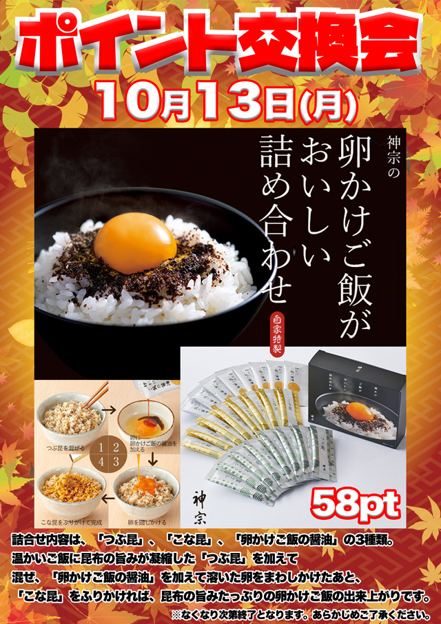 10月13日(月)9:00OPEN☆ポイント交換会開催☆