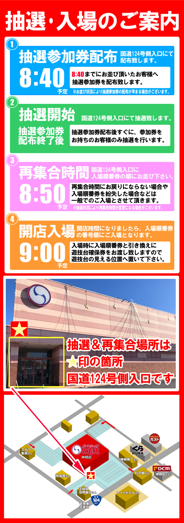 8時40分までにお並び頂いたお客様に抽選参加券を配布し、入場抽選を開始致します。 |