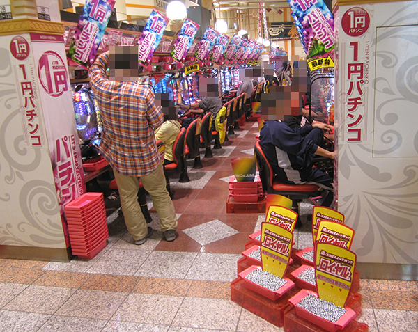 1円パチンコのにぎわいも大きい。