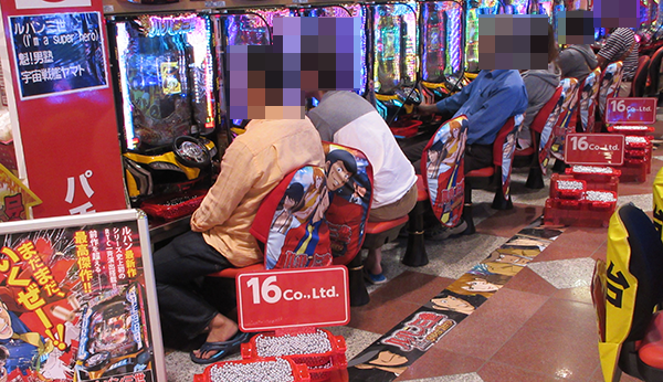 16時頃の4円パチンコでは、「CRルパン三世 I’m a Super hero」と海物語シリーズがひときわ大きく盛り上がっていた。