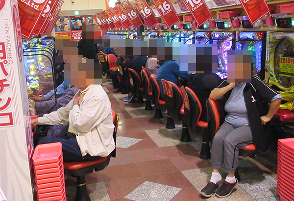 1円パチンコも賑わっており、なかでも海物語シリーズの人気が1番。