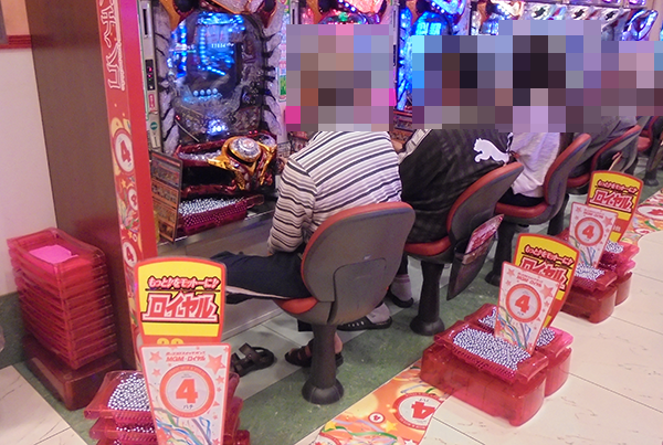 17時頃の4円パチンコでは、「ぱちんこCR真・北斗無双」の盛り上がりがひときわ大きい。