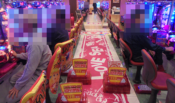 また、各シマの入り口や床面には貸し玉料金の表記がしっかりとされており、みためにもわかりやすい環境が作られている。