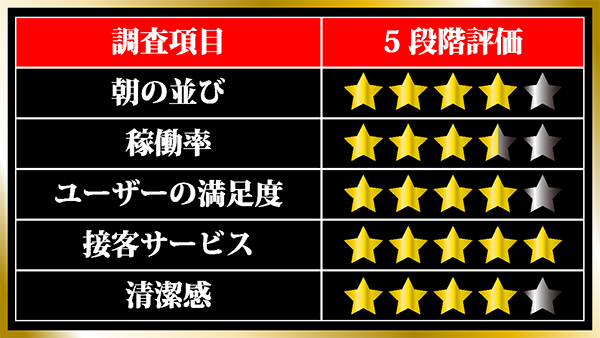 この店舗はパチンコ低貸し玉専門店で、看板に「遊びゴコロにスイッチオン!」と書かれていたことがとても印象に残っている。和やかな雰囲気も感じられ、遊びやすさを魅力に感じているプレイヤーも多いのではないだろうか。