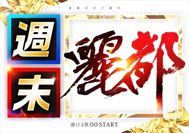 抽選券配布 8:34までに正面入り口ご来店されてたお客様が対象です。 ①抽選開始8:35~ ②再整列 8:45~ ③入場開始9:00~ ※天候などにより時間が変更になる可能性がございます。 |