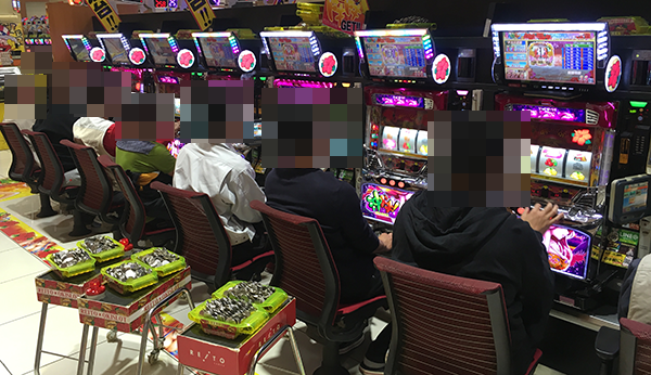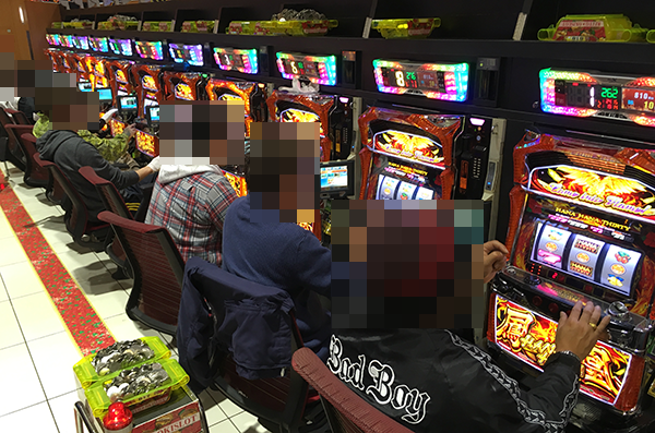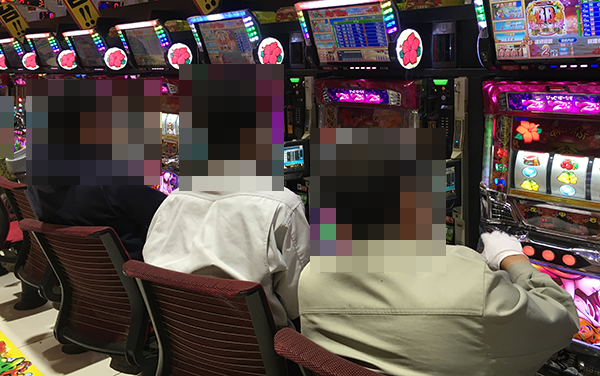 15時過ぎの20円パチスロでは、朝から人気である「沖ドキ!-30」の盛り上がりがとくに印象に残っている。