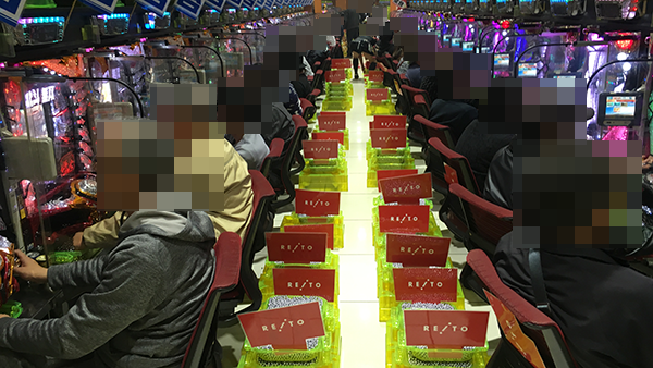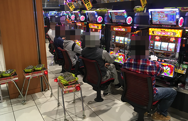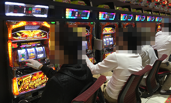 開店直後の動向に大きな違いはなく、20円パチスロの「沖ドキ!-30」やハナハナシリーズはこの日も大人気となっていた。