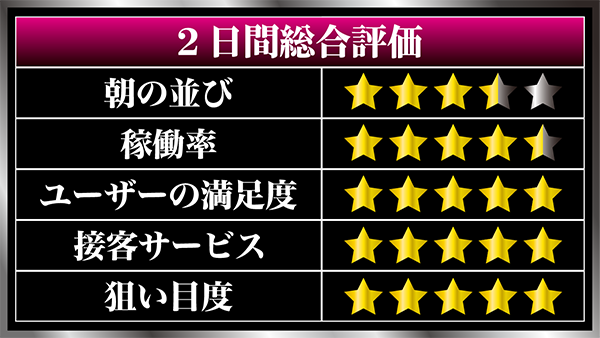 遊技面と環境面の両方のレベルが高く、「麗都KAMISU」が支持を受けている理由を再認識できる2日間となった。