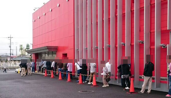 取材日の並びはパチンコ・パチスロ合わせて150名以上と多く、朝からホール周辺は活気に包まれていた。