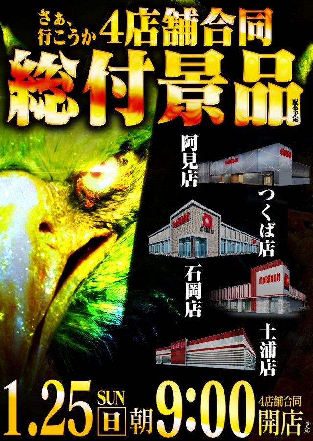 1月25日(日)マルハン阿見店!朝9時開店!!
