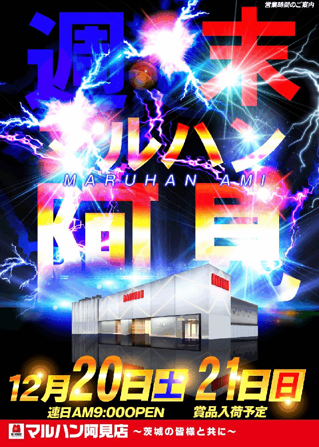 12月20日(土)マルハン阿見店!!朝9時開店!!!