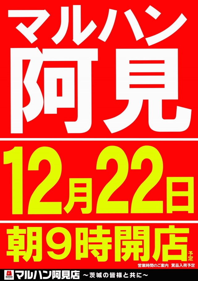 12月22日(月)マルハン阿見店!!朝9時開店!!!