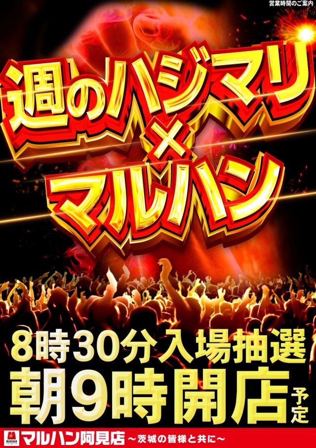 6日(土)7日(日)週末!マルハン阿見店!連日朝9時開店!