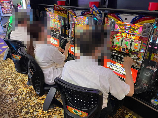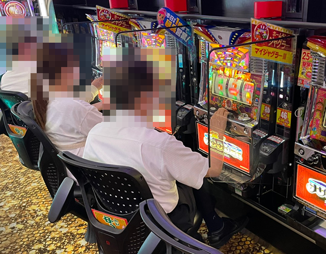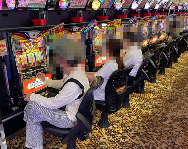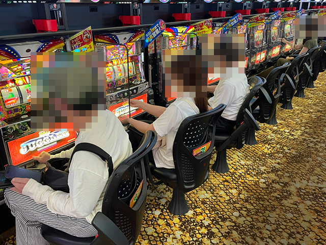 「マイジャグラーⅢ」をはじめ、いくつもの機種が盛況。華やかな光景が広がっており、多くのプレイヤーが有意義な時間を過ごせているといった印象だ。