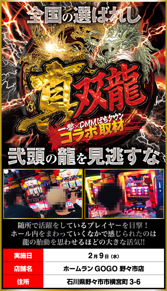 「ホームランGOGO 野々市店」を舞台に、「真双龍」を実施した。