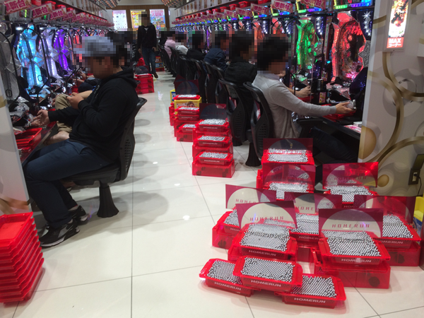 パチスロコーナーでは「パチスロ化物語」と「SLOT魔法少女まどか☆マギカ」が盛況でシマ全体に活気が感じられる。