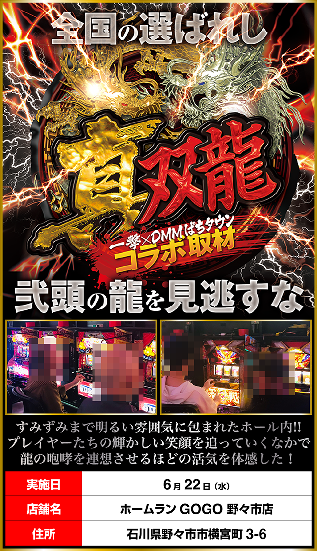 「ホームランGOGO 野々市店」を舞台に、ホールに潜む弐頭の龍を追う「真双龍」を実施。