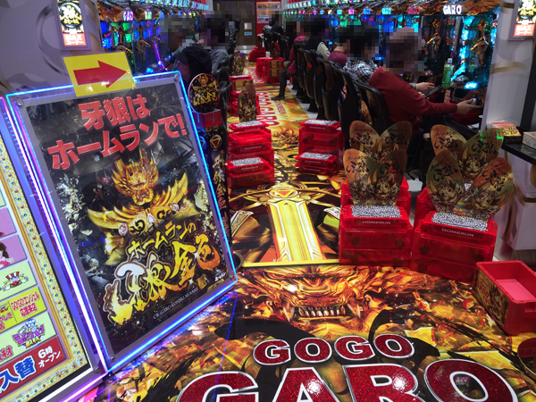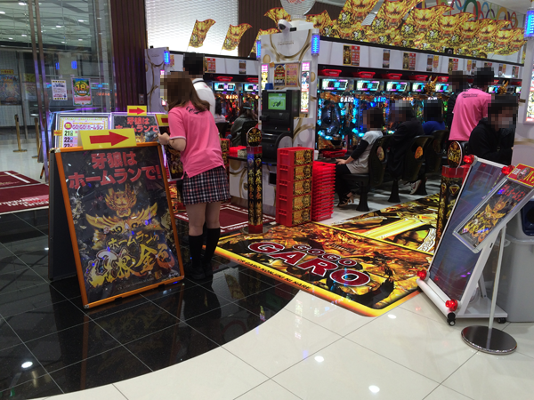 ホール内に入ると一番に目についたのは「CR牙狼 金色になれ」コーナー。装飾を一新しており、もはや定番機種ともいえる人気機種でさらに楽しめる工夫がされていた。