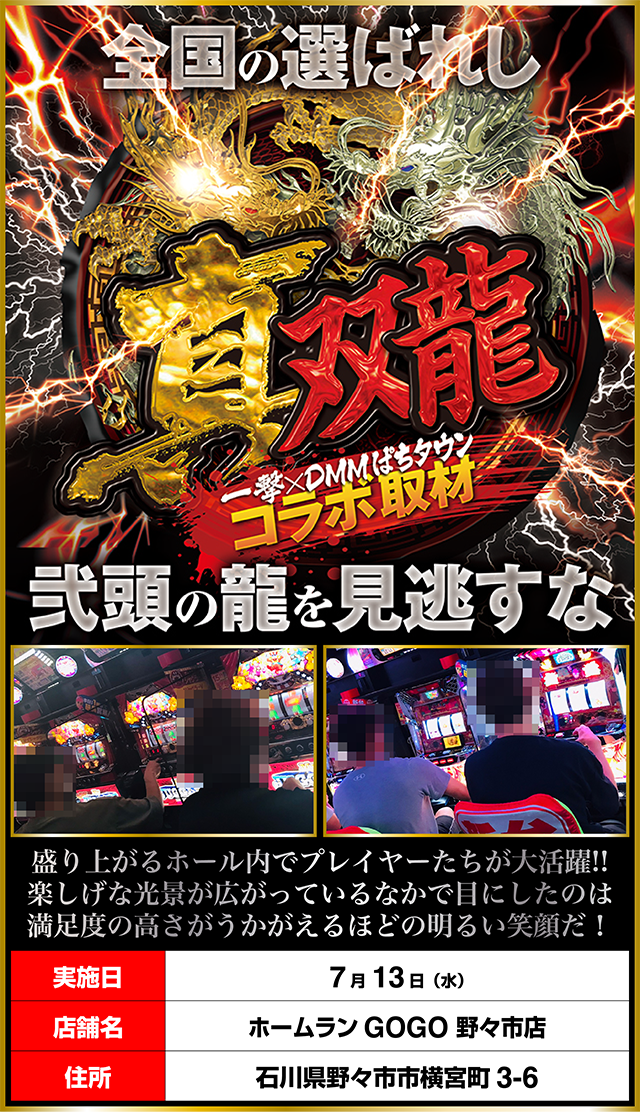 ホールに潜む龍の存在を探る「真双龍」の舞台となったのは、「ホームランGOGO 野々市店」だ。