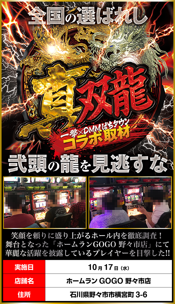 「真双龍」の舞台となったのは、華やかな色づかいの外観も特徴的な「ホームランGOGO 野々市店」。