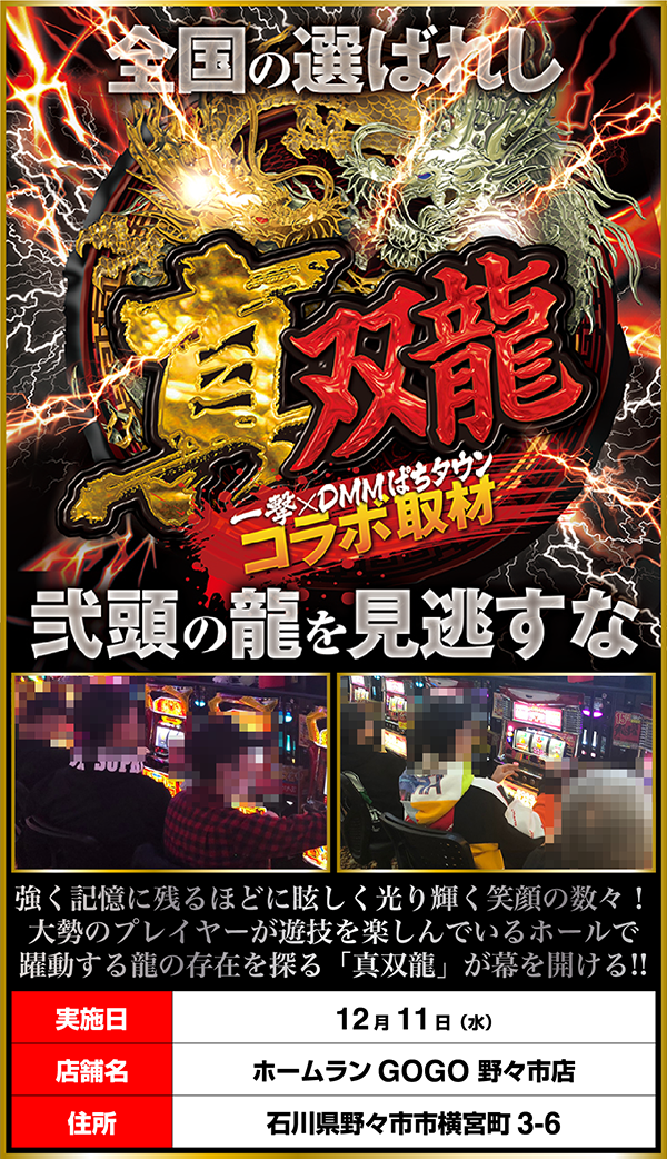 環境面も優れている「ホームランGOGO 野々市店」。「グレートキングハナハナ-30」をはじめ、随所に笑顔が広がっていたことも納得の「真双龍」となった。