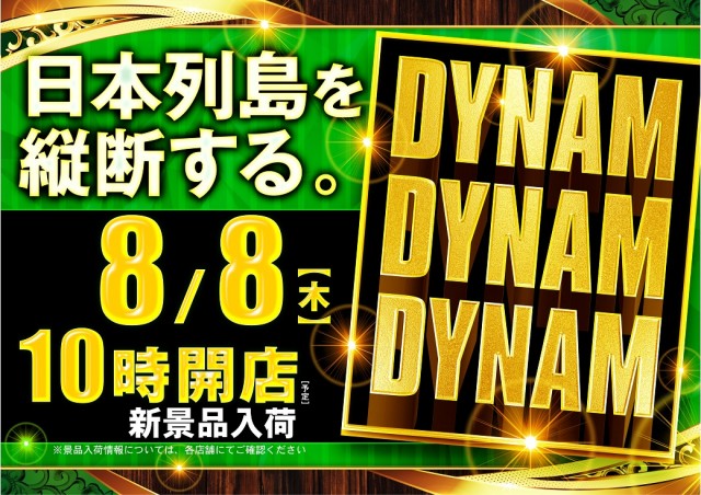 8/8(木)石川県ダイナム全店新景品入荷 全店10時OPEN