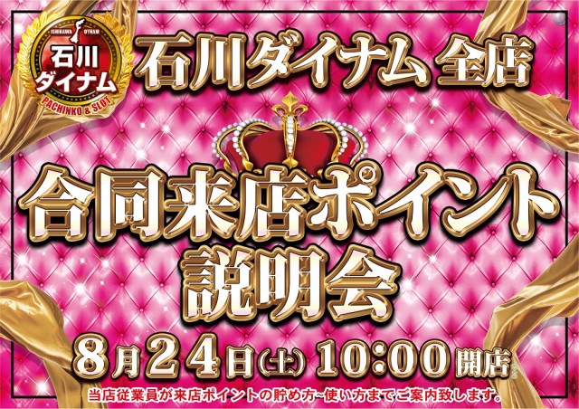 8/24(土) 石川県ダイナム全店合同来店ポイント説明会