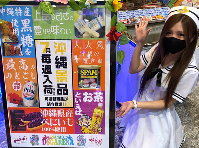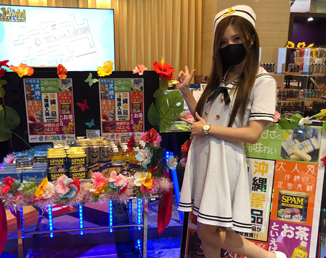 いろいろな賞品があるなかで、ひかるちゃんは沖縄の名産品が気になっている模様♪