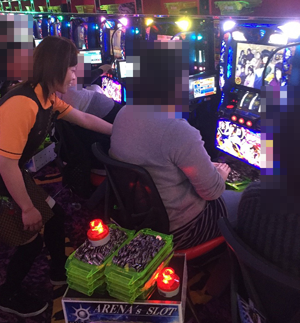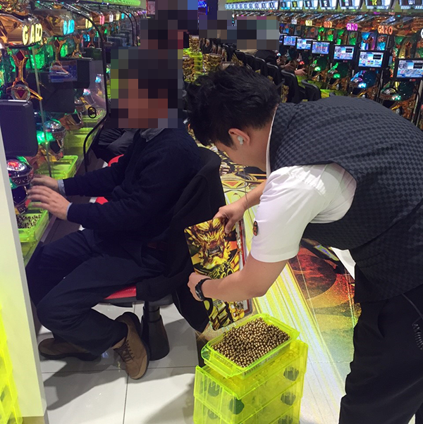 パチンコ・パチスロともに大きく盛り上がるなかで、キレのある動きをみせるスタッフの姿を発見。