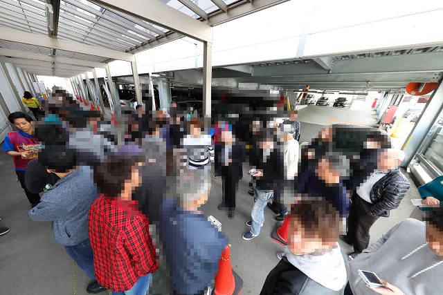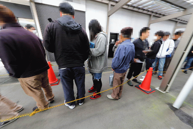 現地「DSGアリーナ七尾店」に着くや否や、オープン前に集まる大勢のファンの姿。