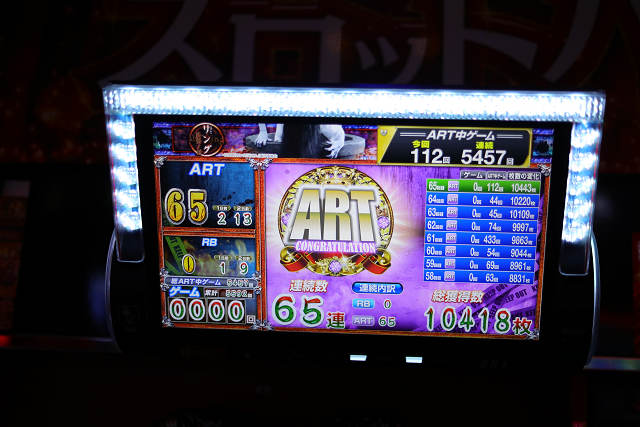 大きな液晶モニター(データランプ)に表示されるメダルの枚数も、別積みに比例してマシマシ状態!
