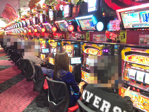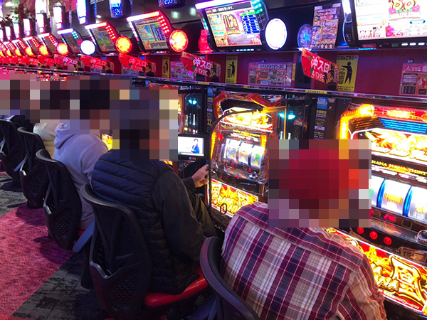 店内をみてみると、パチスロのジャグラーシリーズがとっても人気♪ イキイキと遊技をおこなっているお客さまもたくさんいました!