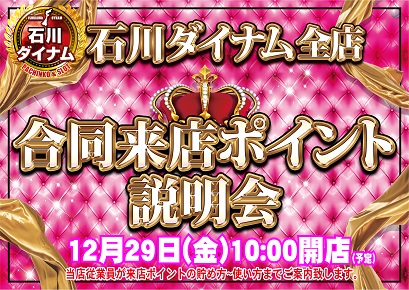 石川県ダイナム全店合同来店ポイント説明会 明日10時開店予定
