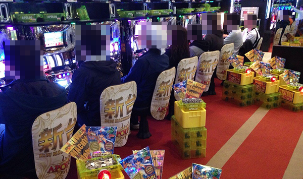 大人気の「パチスロ アラジンAⅡ」は、シマ全体が笑顔にあふれており、見ているだけでも楽しくなれるほどの光景が広がっていた。新台の魅力を心から堪能しているプレイヤーたちの表情が印象的だ。