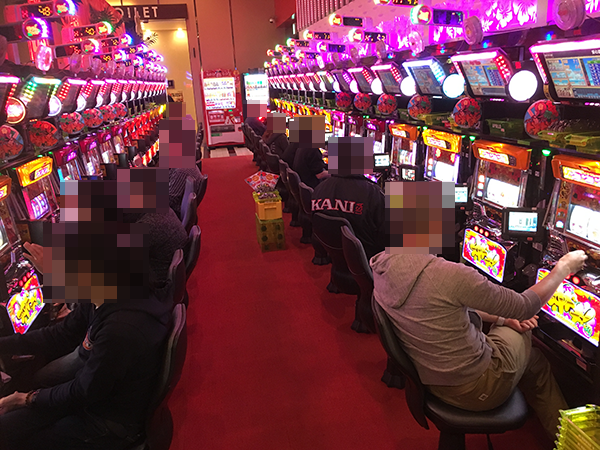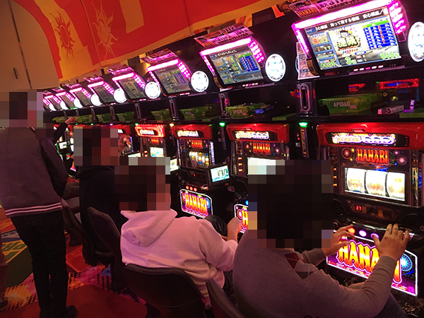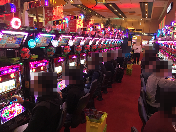 地域最大級のパチスロ専門店となっており、取材当日には大勢のプレイヤーが訪れていた。