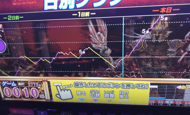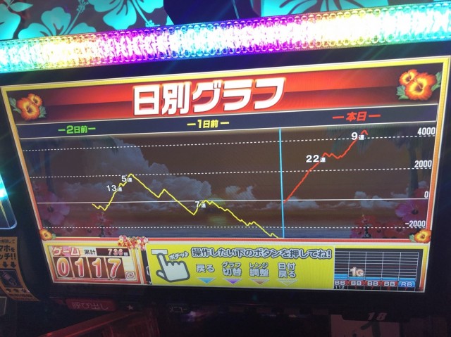 当日は、早いゲーム数で初当りを2回とっているだけに上げてきたように感じますが、前日も初あたりは多くとっていますよね!