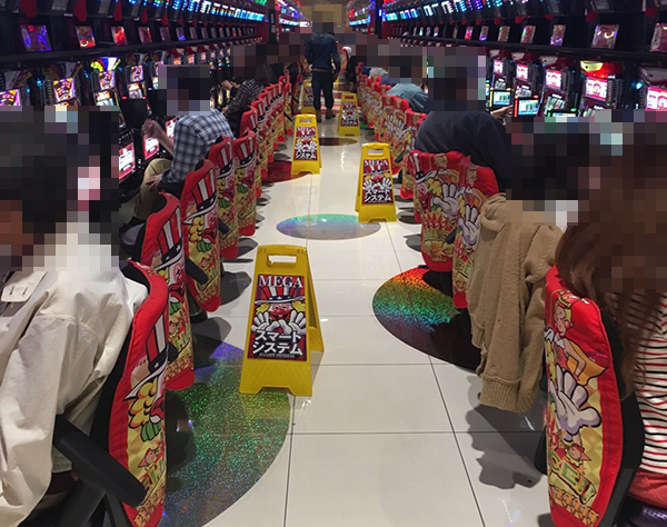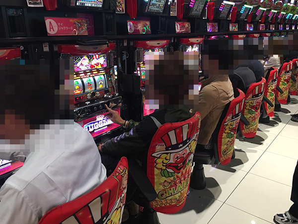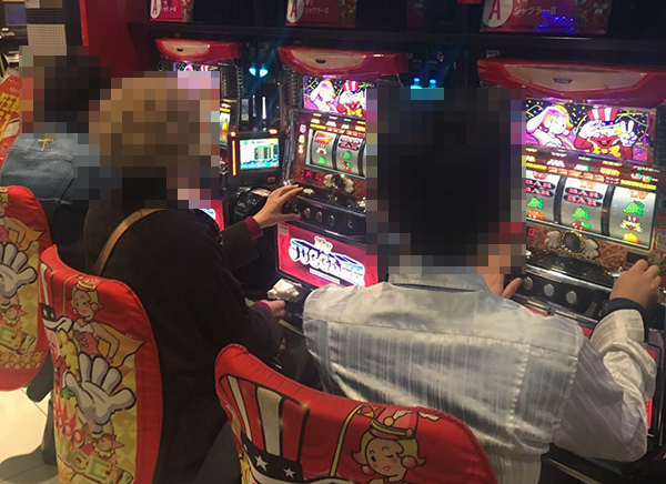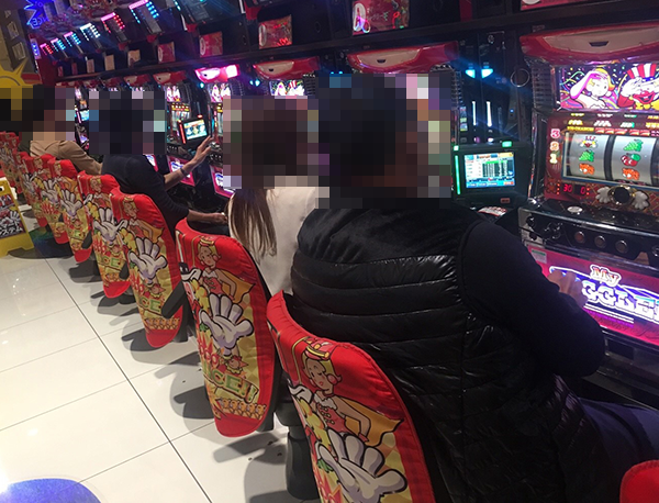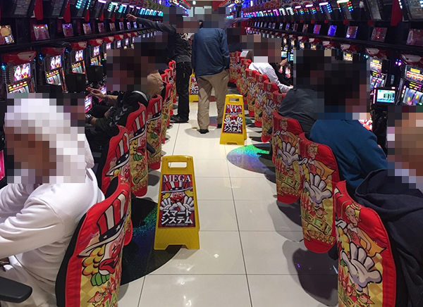設置台数が1000台を超える広々としたホール内では、大勢のプレイヤーが遊技をおこなっていた。